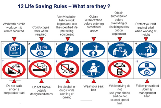 In mid 2009, AFPC implemented 12 so-called “life saving rules” that are based on an analysis by Shell of fatalities that occurred in the